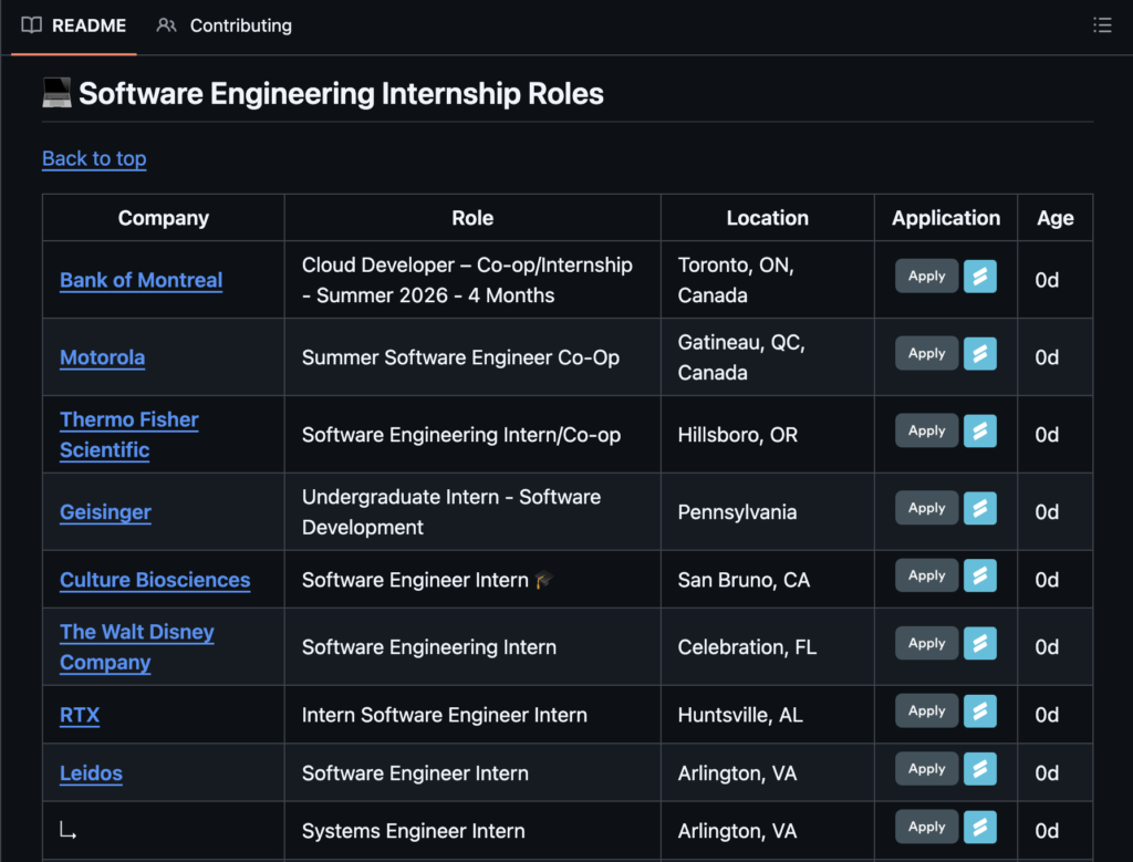 This one changes every year, so I keep the link updated, but for 2026 summer internships, there’s a GitHub repository that hand-picks and curates internship openings from the most notable companies in the world.